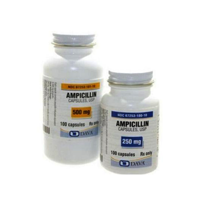 Common use: Ampicillin is a broad-spectrum antibiotic from aminopenicillin group. Its mechanism of action is anti-bacterial and consists in inhibition of construction of bacteria cell walls sensitive to Ampicillin. It is not destroyed in acidic content of stomach, it is easily absorbed. Ampicillin is active toward gram positive microorganisms and also some gram negative ones (salmonella, schigella, proteus, E. coli, Klebsiella pneumoniae, Haemophilus influenzae, formerly called Pfeiffer’s bacillus) and is used for treatment of the diseases provoked by mixed bacteria. Microorganisms producing penicillase are resistible to Ampicillin.