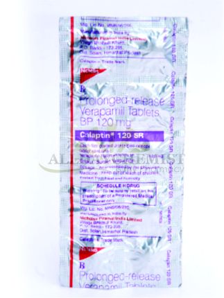 Calaptin SR 120 mg is indicated in the treatment of hypertension (high blood pressure). It contains the active ingredient Verapamil, which causes the blood vessels to relax so that blood can flow more easily around your body. The medicine causes a significant drop in blood pressure and reduces your risk of having a stroke, kidney problems, and heart attack in the future.