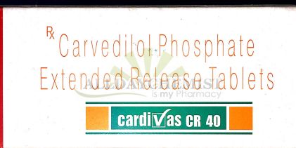 Cardivas CR 40 is a prescription medication which belongs to a group of medicines called beta blockers. It is often recommended with other medicines to treat the following condition. — Herat failure – To treat mild to moderate-severe chronic heart failure of ischemic or cardiomyopathic origin, usually in addition to diuretics, ACE inhibitors, and digitalis, to reduce the risk of hospitalization and increase overall health. — Hypertension (high blood pressure) – Cardivas is a controlled-release tablet for managing essential hypertension. It can be used alone or with other antihypertensive agents, especially thiazide diuretics. — Left ventricular dysfunction following myocardial infarction – Carvedilol is also used to reduce mortality in clinically stable patients who have survived the acute phase of myocardial infarction.
