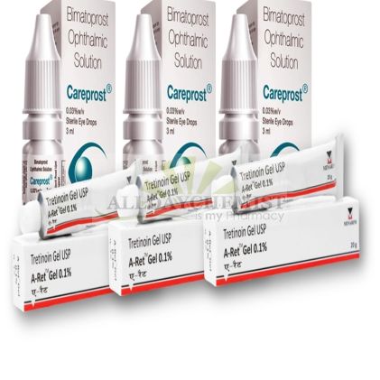 A special collection for fuller eyelashes and blemish-free skin here’s presenting a combo pack of Careprost eye drops and A Ret Gel 0.1%. It is a combination of separate products packaged together in a single packaging. Celebrate with your friends and loved ones without having acne on your face and showing only naturally grown eyelashes with grace. A combo pack is a perfect option for those who are looking to improve the appearance of their eyes and skin. Careprost Eye Drops – Clinically tested and high-performance eyelash growth solution, Careprost enhance the appearance of eyelashes within a few weeks of application. The product is safe for most users who use it regularly and correctly. The eyelash solution is best used under the supervision of a dermatologist. The lash serum contains Bimatoprost, the same active ingredient present in the medication for glaucoma. It is highly effective in increasing the length and fullness by increasing the number of eyelashes. The ophthalmic solution is ideal for both men and women. Careprost eye drop is a perfect solution for the development of thin and even sparse eyelashes. A Ret Gel 0.1% – A ret gel contains the active ingredient Tretinoin which is one of the most popular treatments for acne vulgaris. It is incredibly effective at decreasing the number and severity of pimples. The active pharmaceutical ingredient promotes quick healing f acne as well as prevent future outbreaks. Tretinoin is a retinoid that works by affecting the growth of skin cells.