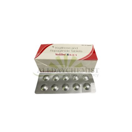 Volibo R 0.3/1 mg is an anti-diabetic medicine prescribed for the management of diabetes that helps your pancreas produce more insulin, thereby lowering the glucose content in the bloodstream. It is a combination drug that belongs to the anti-diabetic class of medicines. Each Volibo tablet contains two active ingredients, namely Repaglinide and Voglibose. Together, they work to control the high blood sugar levels in your body after each meal. The combination medicine is effective when similar medicines and a restricted diet are not enough to control abnormally high blood sugar levels. The anti-diabetic agent is only a part of a treatment program that should include a healthy diet, regular exercise, and weight reduction as advised by your doctor.